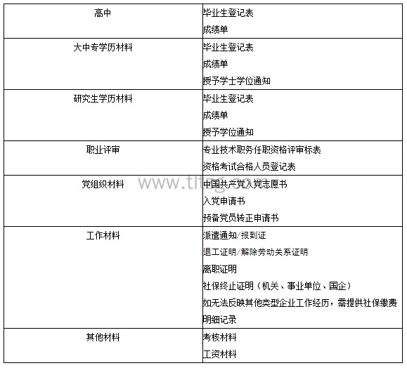 3、档案材料要求是从高中阶段填写,一直填写到现在单位,外地工作期间大多数区只要最后一个单位的《离职证明/退工单/解除劳动关系证明》(居转户要所有的工作经历证明);