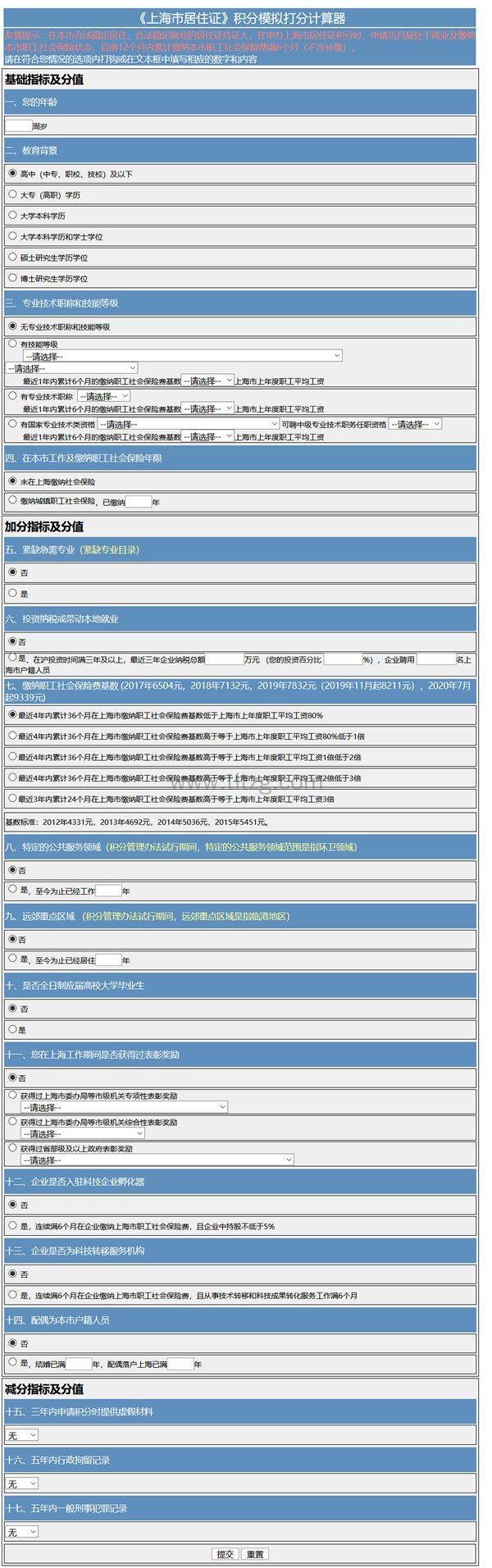 《上海居住证》积分模拟打分器:上海居住证积分评分标准