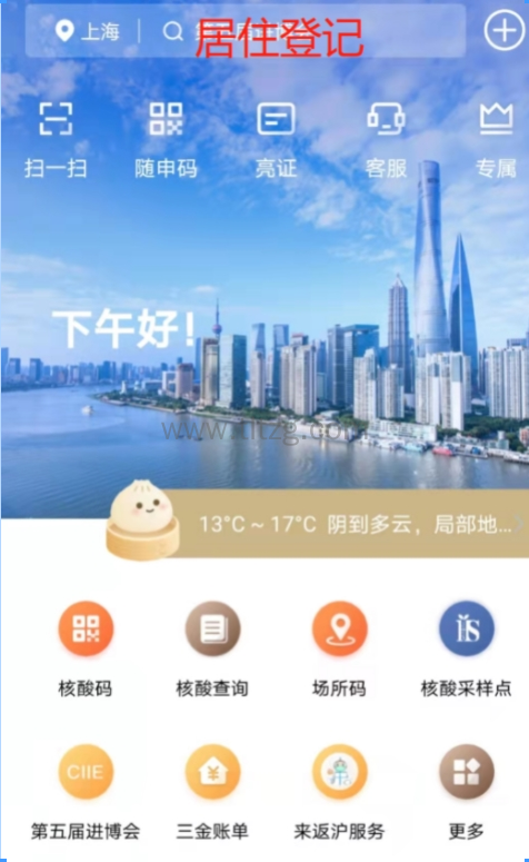 操作1:打开随申办,在首页搜索“居住登记”,进入居住证办理一件事专栏;