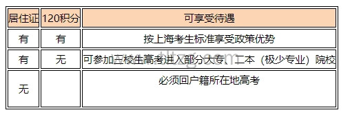 2、父母一方持有上海居住证积分并达到120分,如果家长只有居住证没有办理积分,孩子只能报考中专和职教,不能报考正常高中;