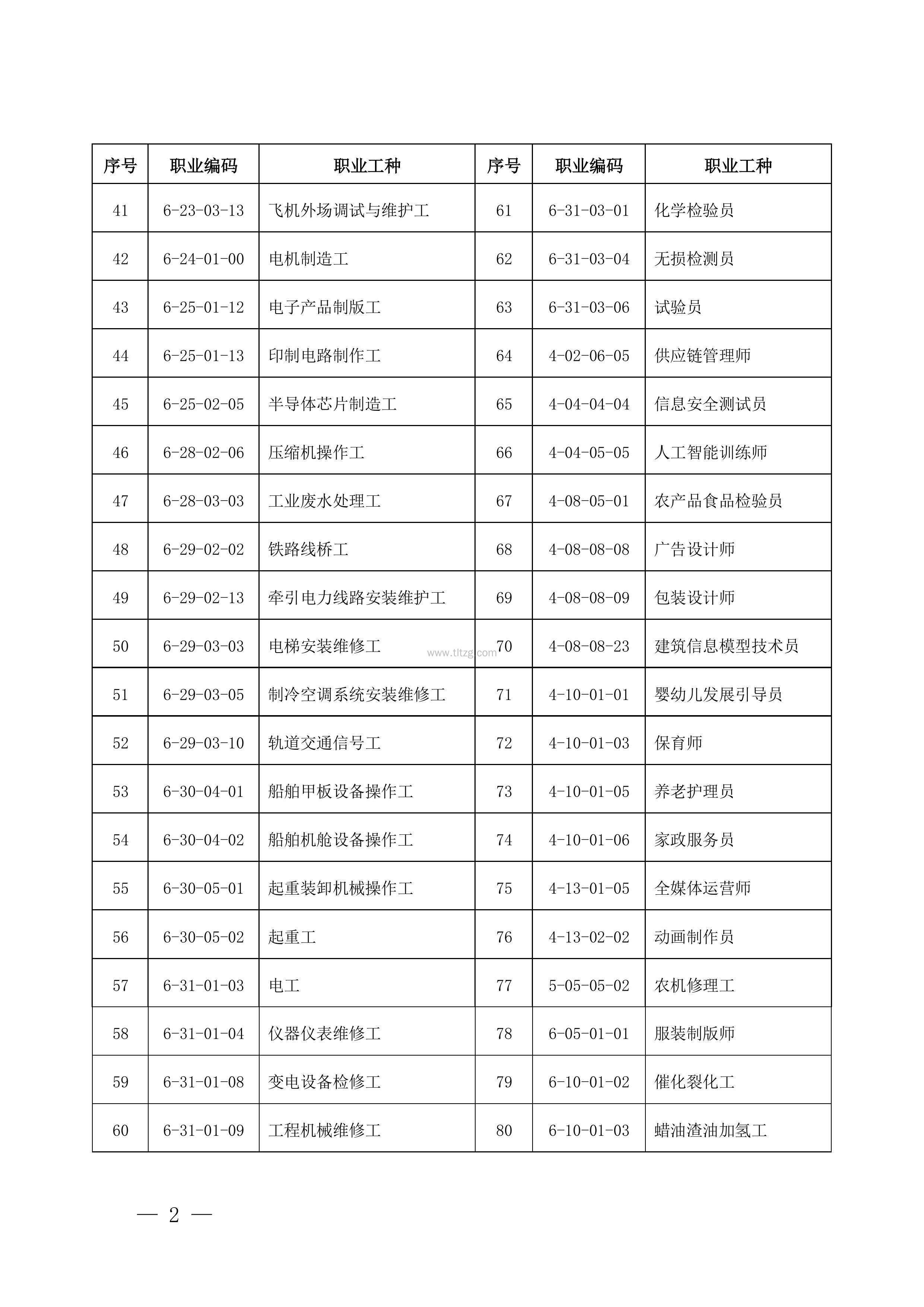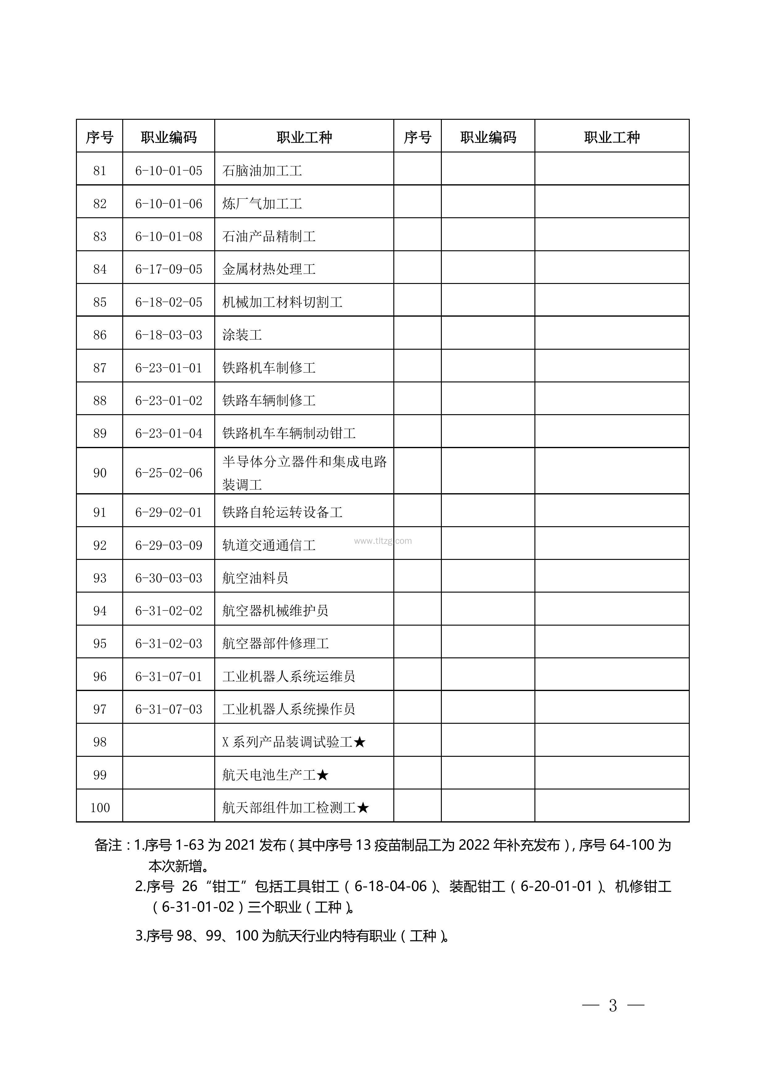 3.序号98、99、100为航天行业内特有职业(工种)。