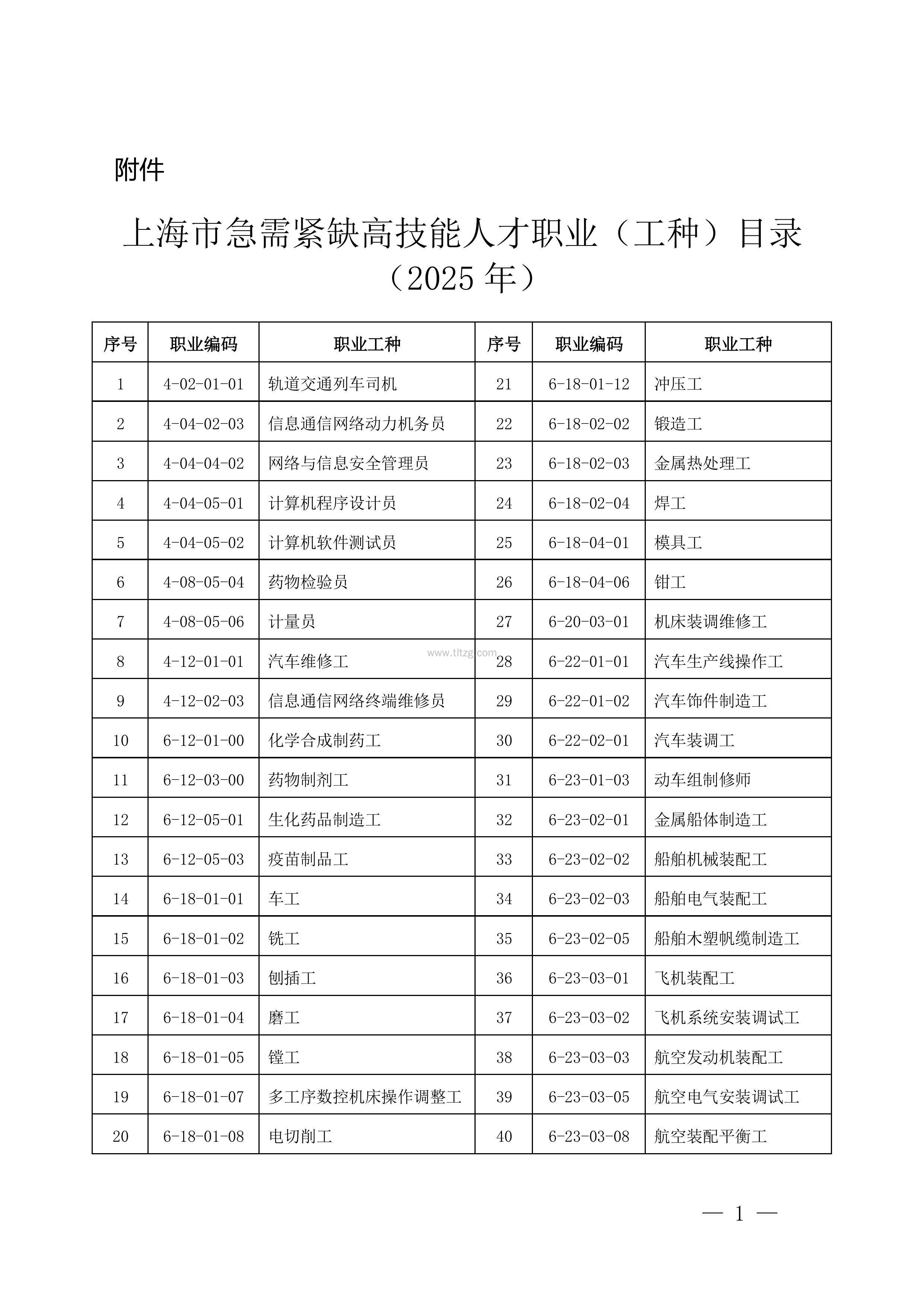一、2025上海积分技能证书目录:上海急需紧缺高技能人才职业(工种)目录