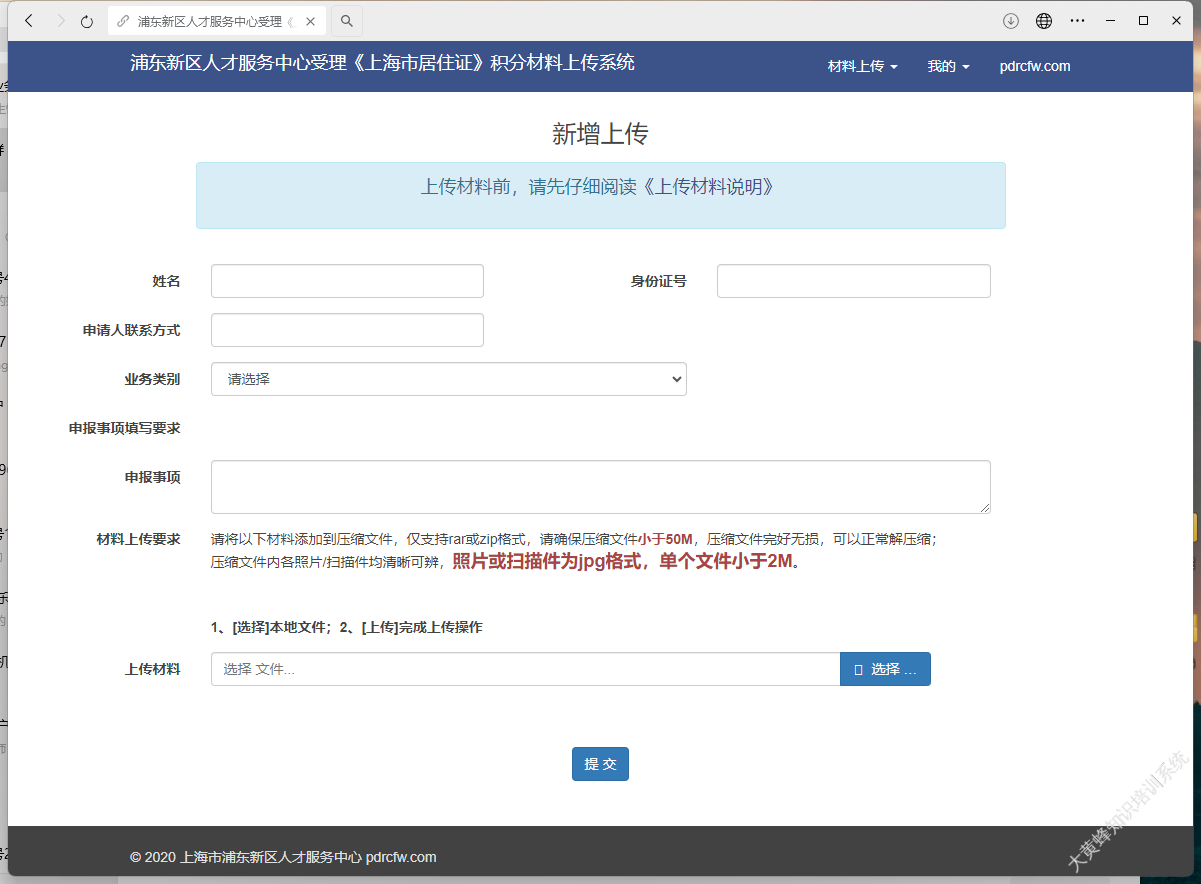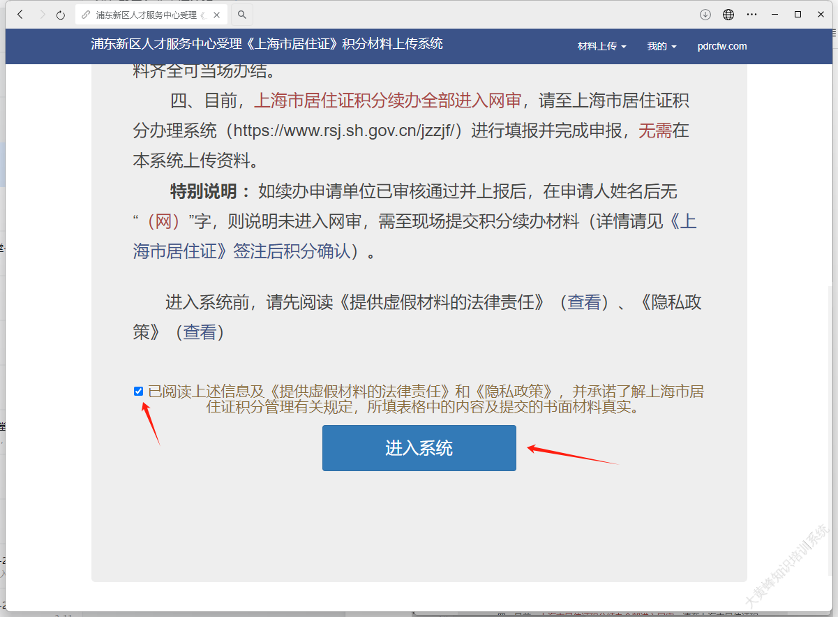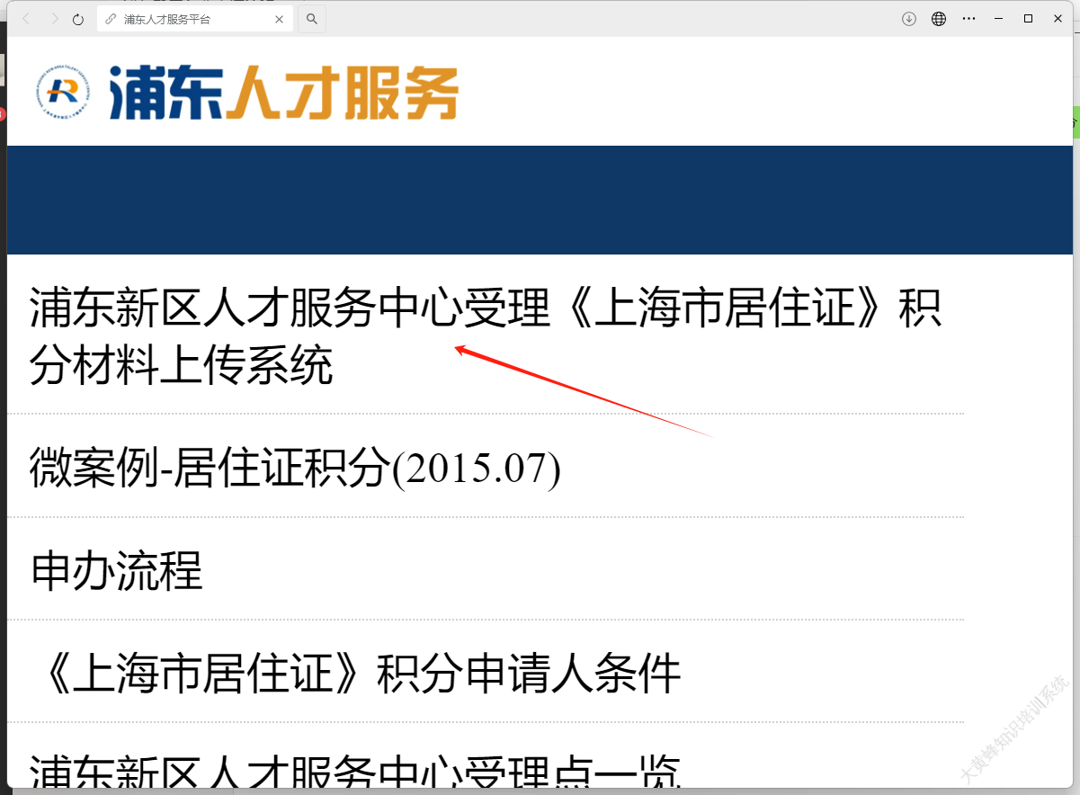(3)点击浦东新区人才服务中心受理积分材料上传系统