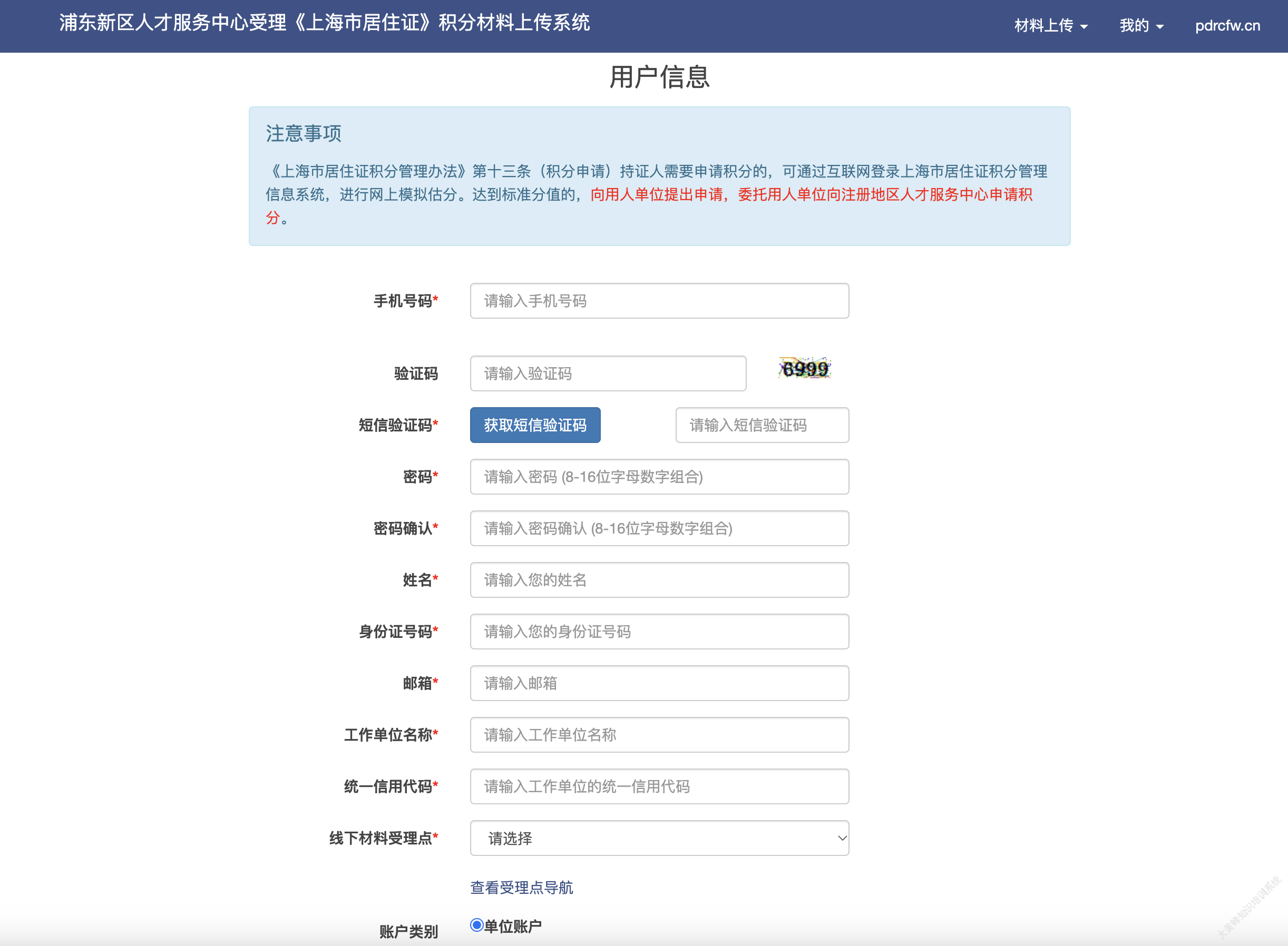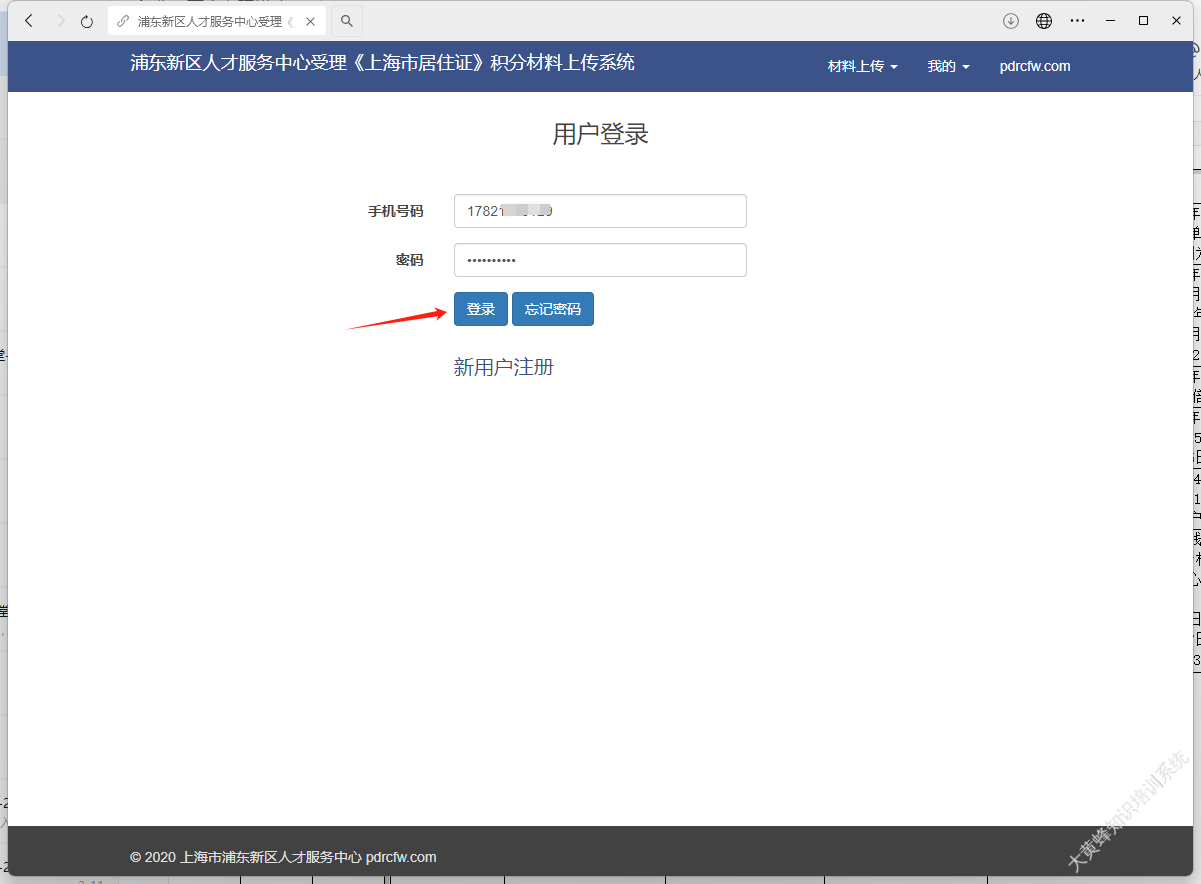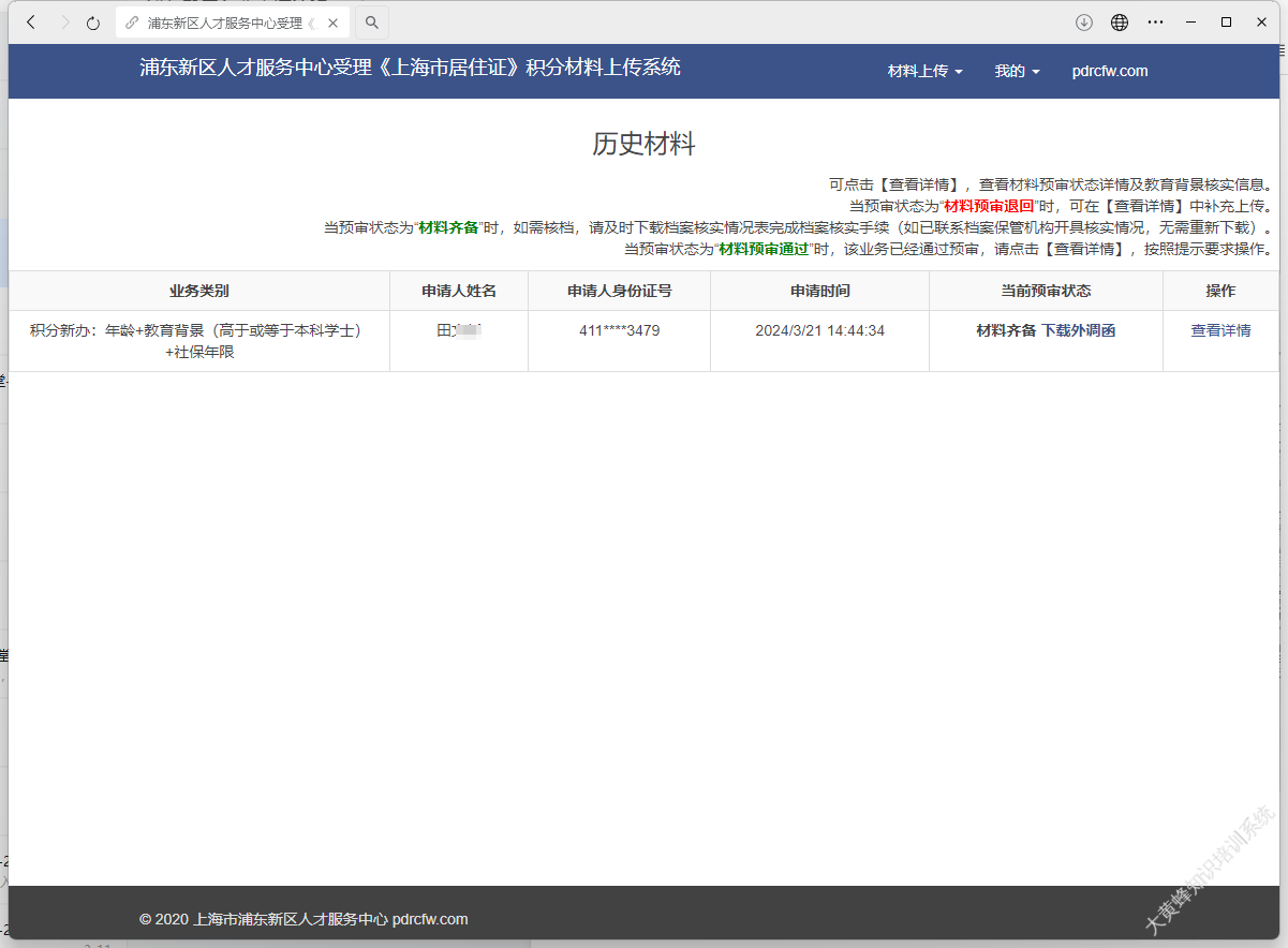 (3)点击浦东新区人才服务中心受理积分材料上传系统