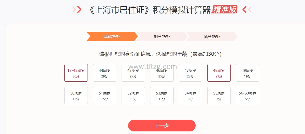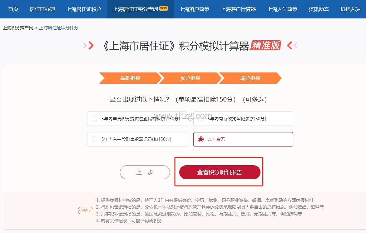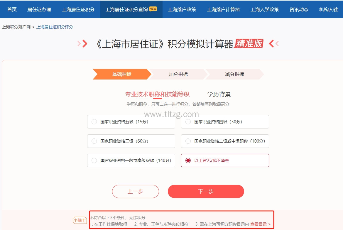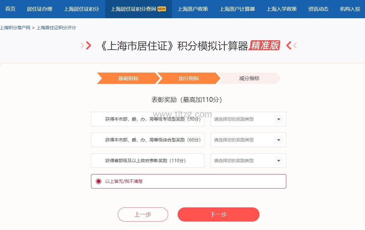 点击进入官方上海居住证积分模拟打分计算器入口:https://www.tltzg.com/calc