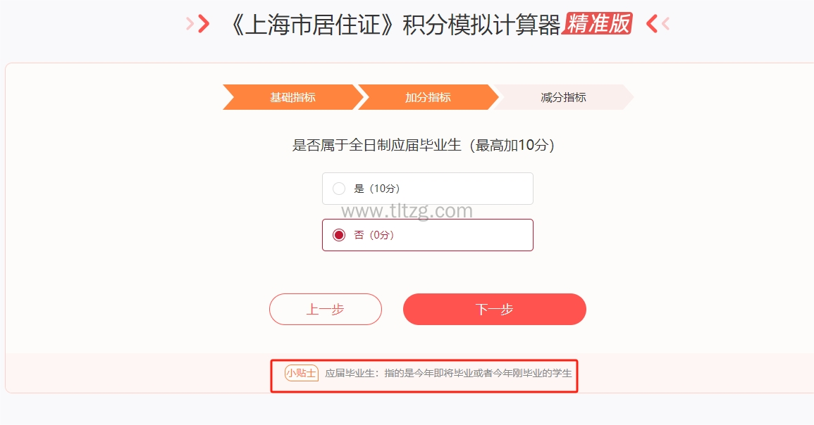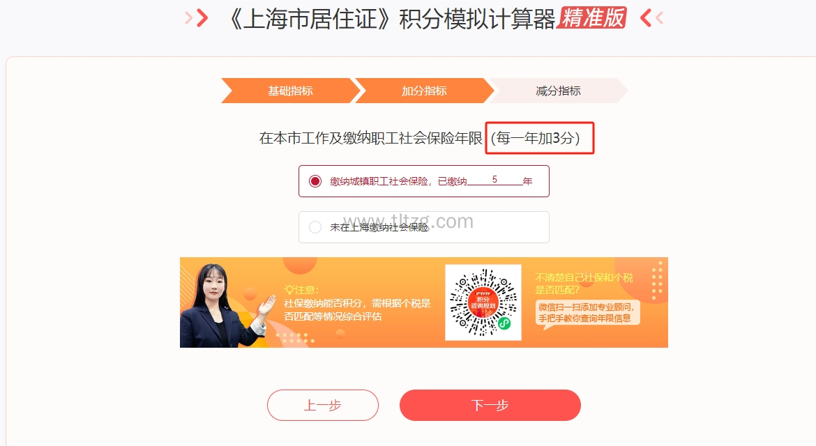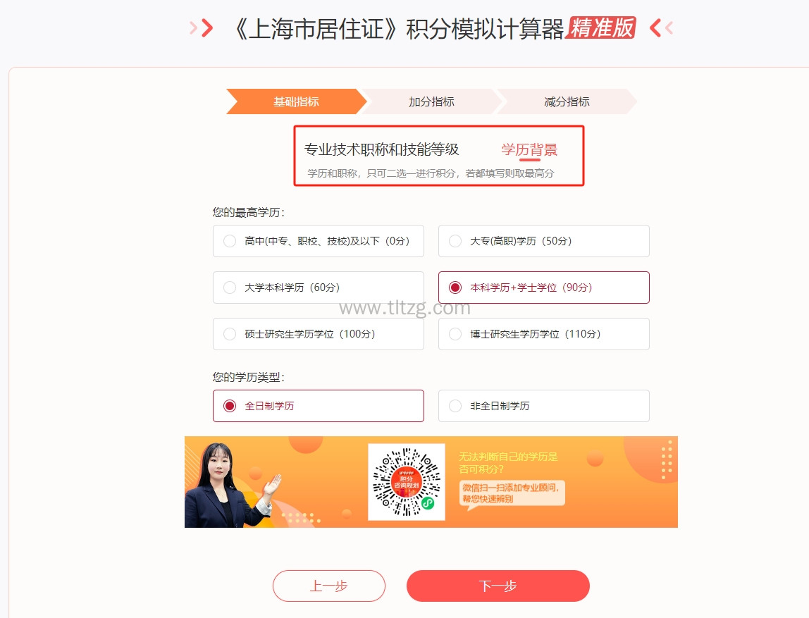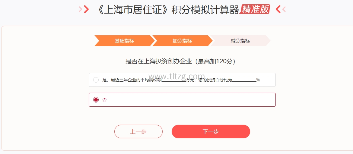 点击进入官方上海居住证积分模拟打分计算器入口:https://www.tltzg.com/calc