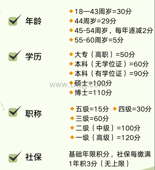1、国家二级、中级职称(100分)+年龄(30分)+每年6个月1倍社保>120分