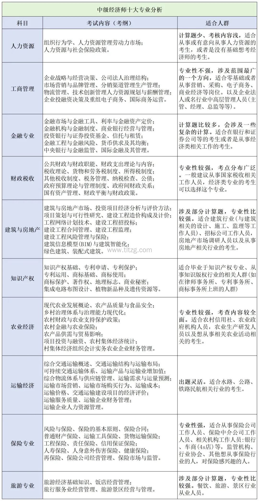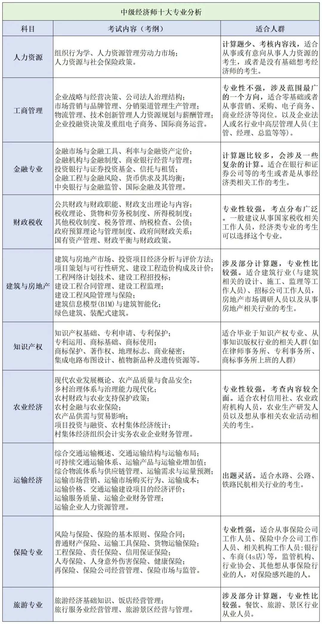 ② 《专业知识和实务》:专业选考科目,按 “工商管理、农业经济、财政税收、金融、保险、运输经济、人力资源管理、旅游经济、建筑与房地产经济、知识产权”10 个专业类别命制试卷,考生报考时选择 1 个专业即可。
