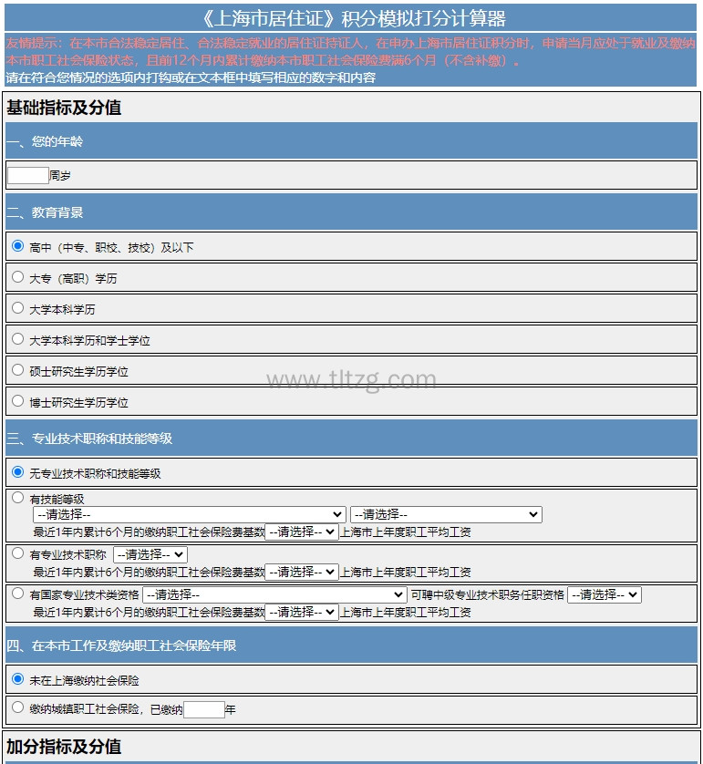 二、上海居住证积分模拟打分计算器:上海积分官网入口(2025最新版)