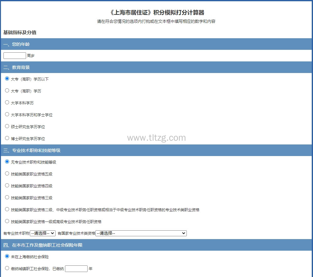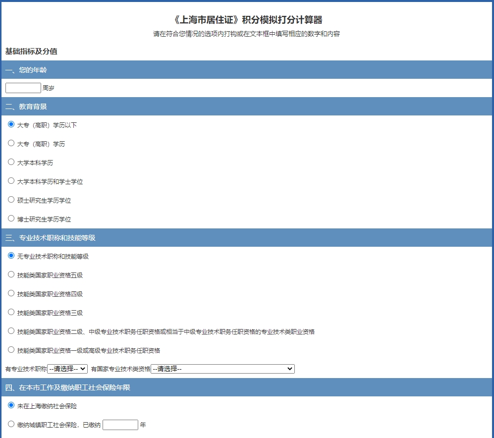 2022年《上海市居住证》积分模拟打分计算器入口,点击算分