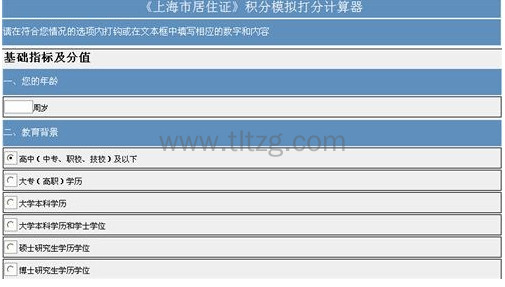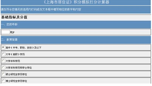 上海居住证积分模拟打分基础指标及分值