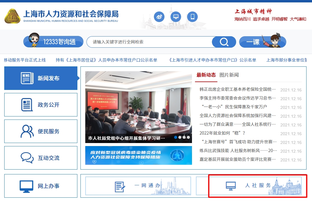 打开“上海市人力资源与社会保障网”点击右下角“人社服务”