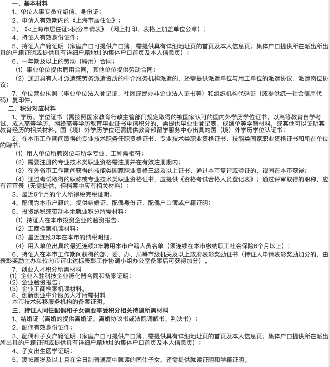 三、持证人同住配偶和子女需要享受积分相关待遇所需材料