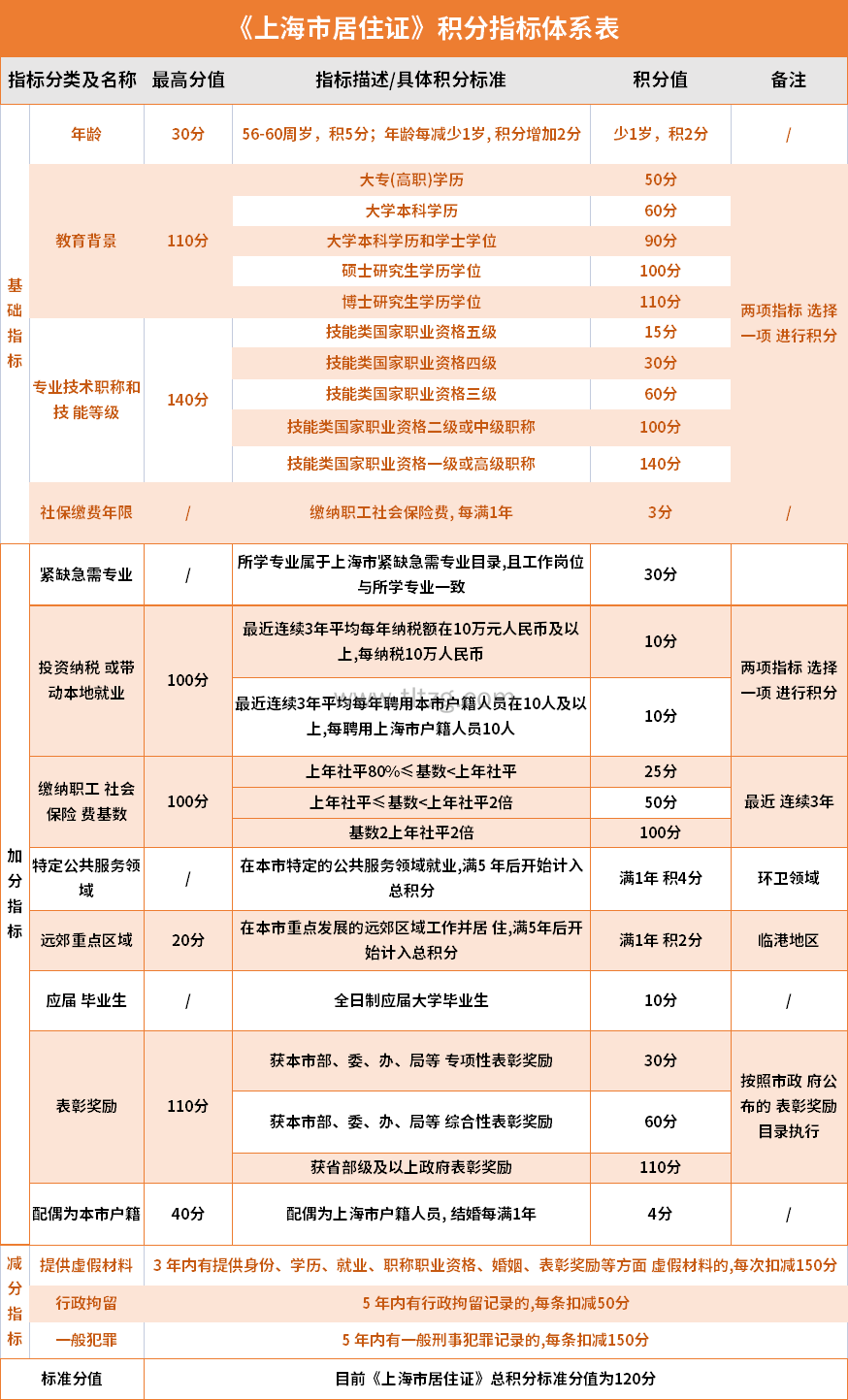 相关阅读:上海居住证积分120分怎么算?积分120分打分很简单!
