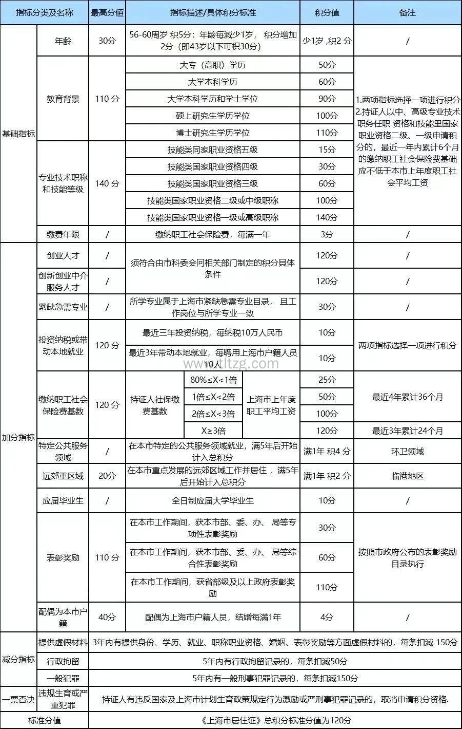 评分标准:依照《上海市居住证积分管理办法》最新政策内容。