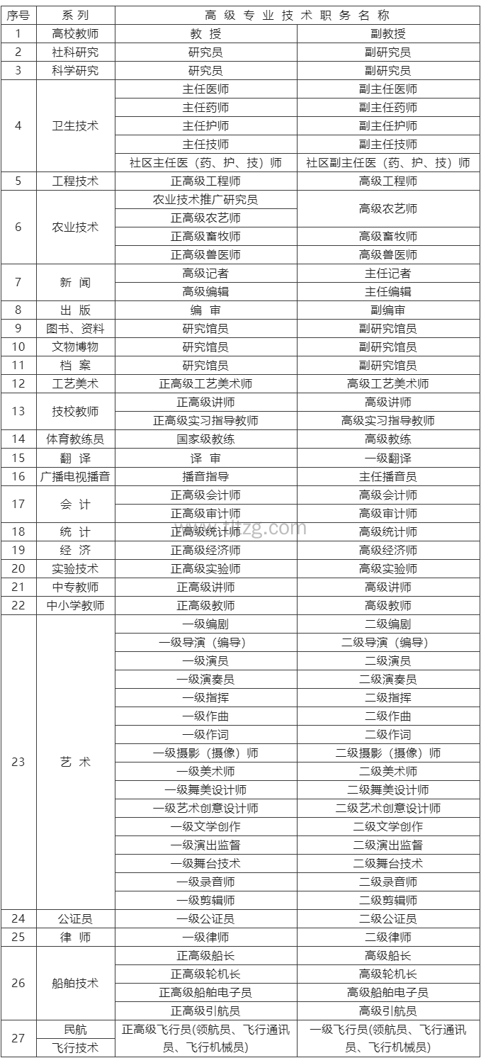 中级及以上专业技术职称(职务)可参考以下职称系列目录: