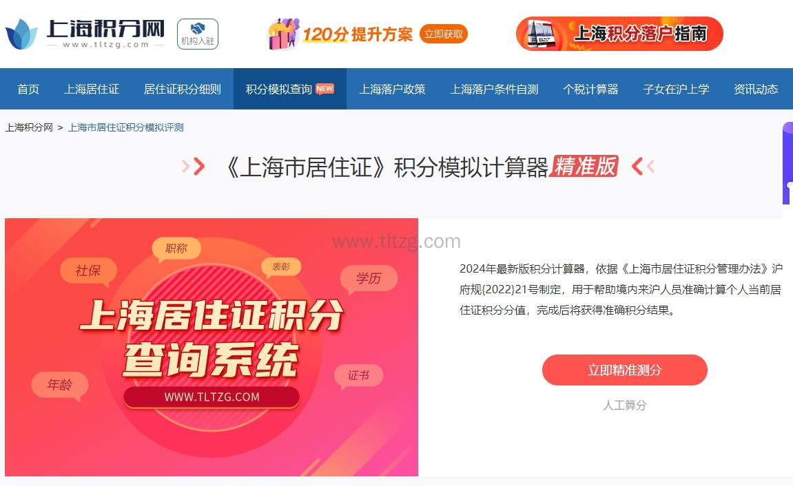 另外还可以通过上海积分网:《上海市居住证》积分模拟计算器精准版计算分时是否满120