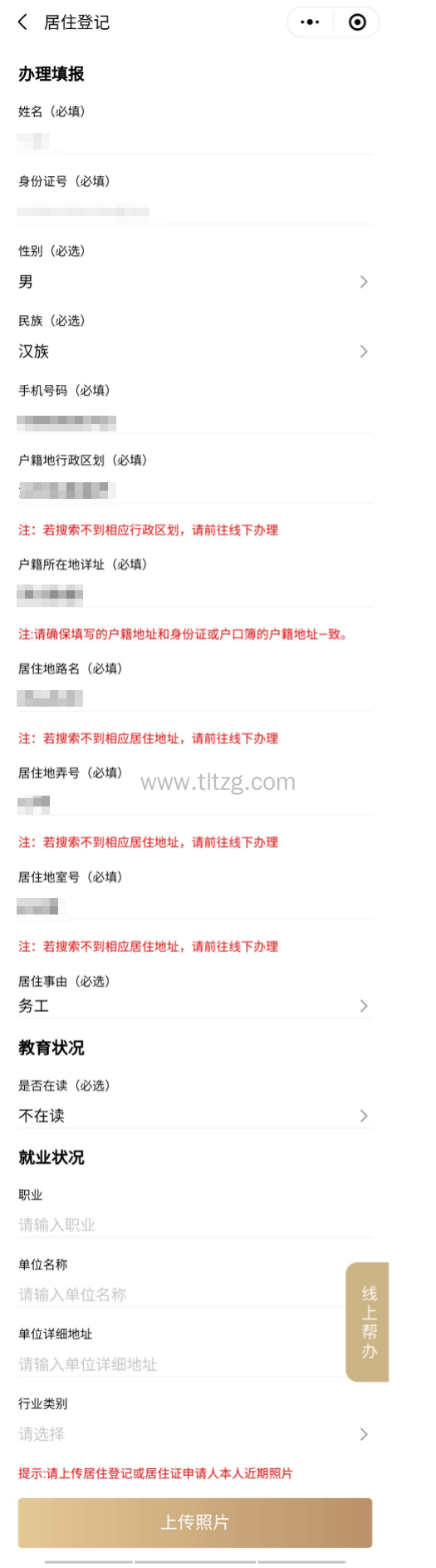 根据提示填写居住信息,身份信息,上传签好的租赁凭证和个人证件照,如果还没有合格的居住证照片,按照系统提示在线采集。