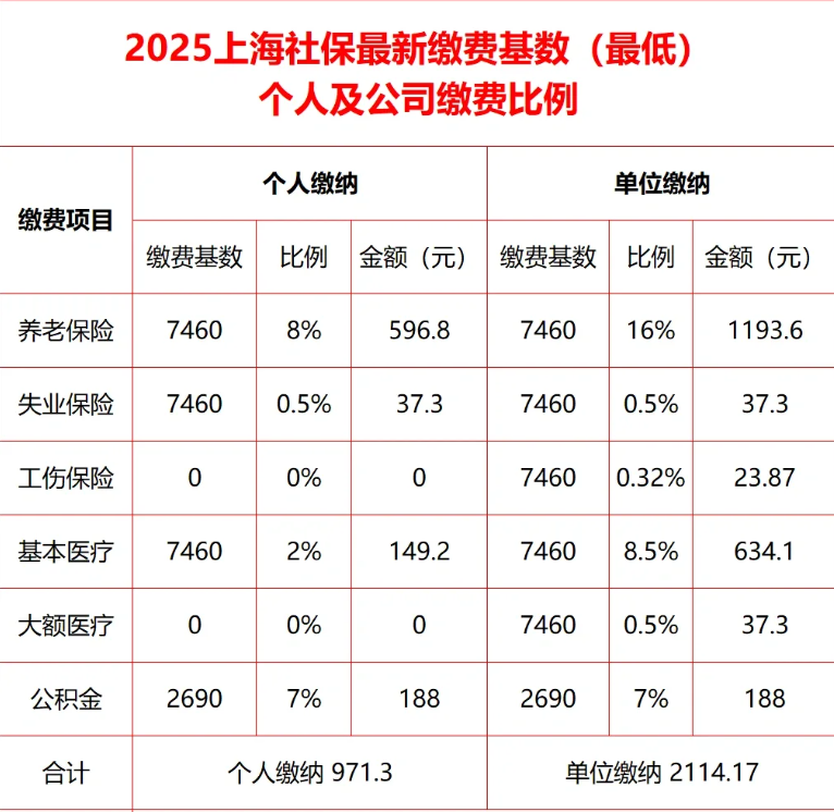 一、上海社保公司和个人各交多少:2025年上海社保缴费基数标准