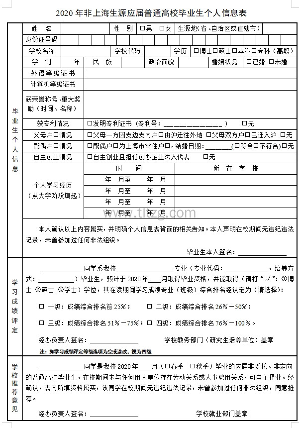 (2020年非上海生源应届普通高校毕业生个人信息表)