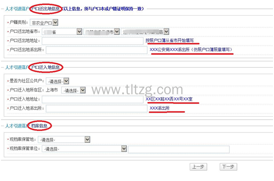 严格按照户口簿或户籍证明来填写户口迁出地地址及派出所,按照系统要求从省市开始填写。并且要准确无误地填写户口迁入地信息,并确认核实好迁入地所属派出所。