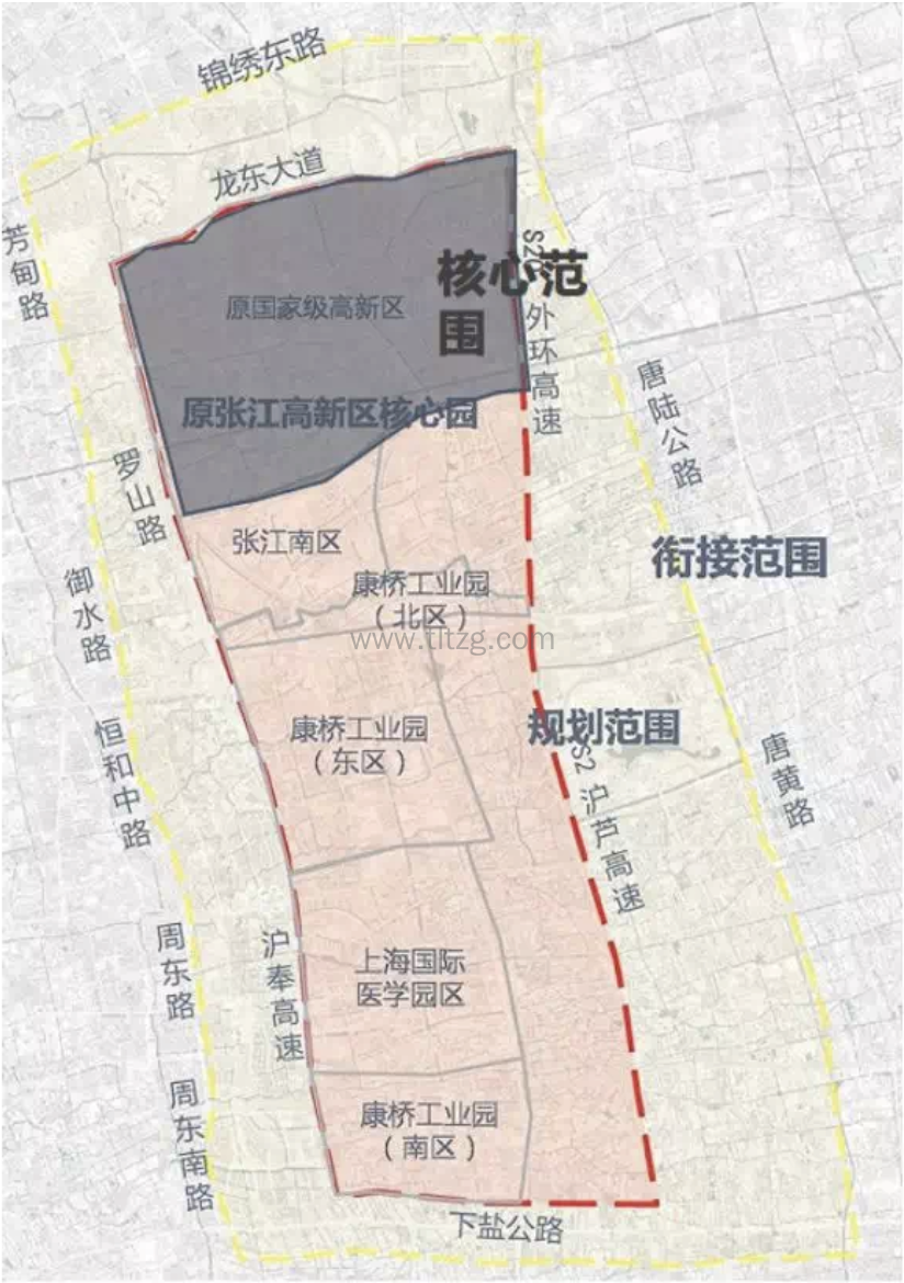 张江科学城的地理范围是:北至龙东大道、东至外环-沪芦高速、南至下盐公路、西至罗山路-沪奉高速。
