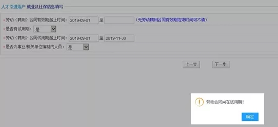 6.准确填写申请人的就业信息,劳动(聘用)合同有效期及试用期务必严格按照劳动(聘用)合同上的日期准确填写。如果申请人尚在试用期,须通过试用期后才能申报!