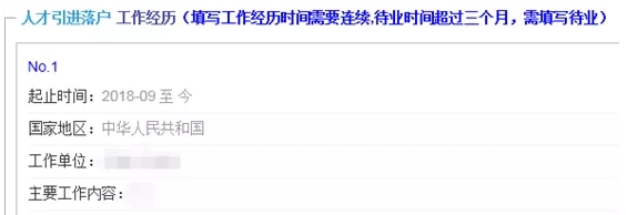 5.按照时间顺序完整填写申请人的工作经历,小编在这里要提醒大家,工作经历应从全日制学历毕业后开始填写,超过三个月未就业的须注明待业。