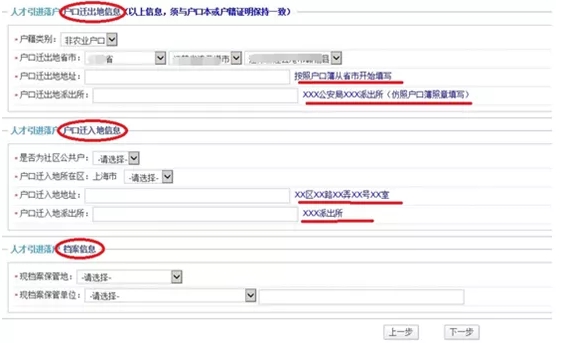 3.严格按照户口簿或户籍证明来填写户口迁出地地址及派出所,按照系统要求从省市开始填写。并且要准确无误地填写户口迁入地信息,并确认核实好迁入地所属派出所。