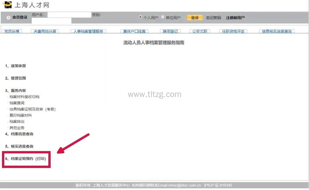 3、点击“档案证明预约(打印)”栏目