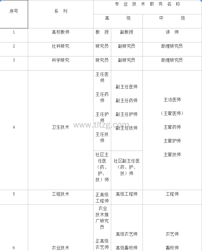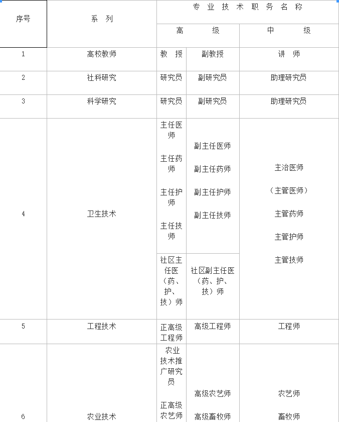 其中,中级及以上专业技术职称(职务)可参考以下职称系列目录:
