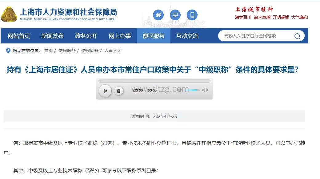 上海居转户中级职称的问题:持有《上海市居住证》人员申办本市常住户口政策中关于“中级职称”条件的具体要求是?