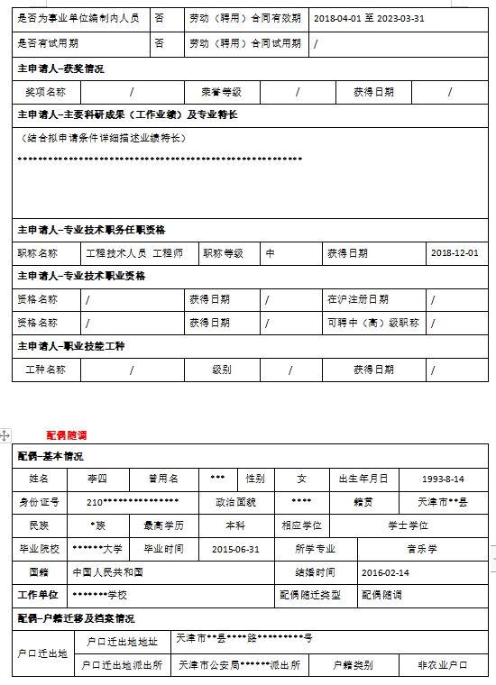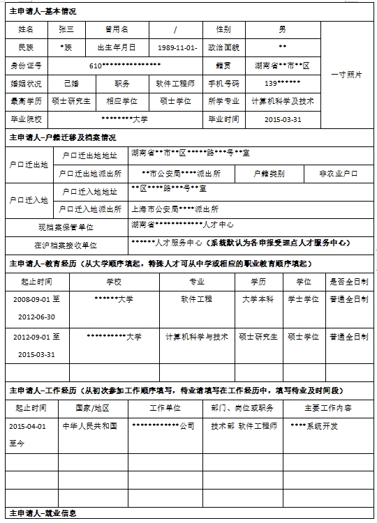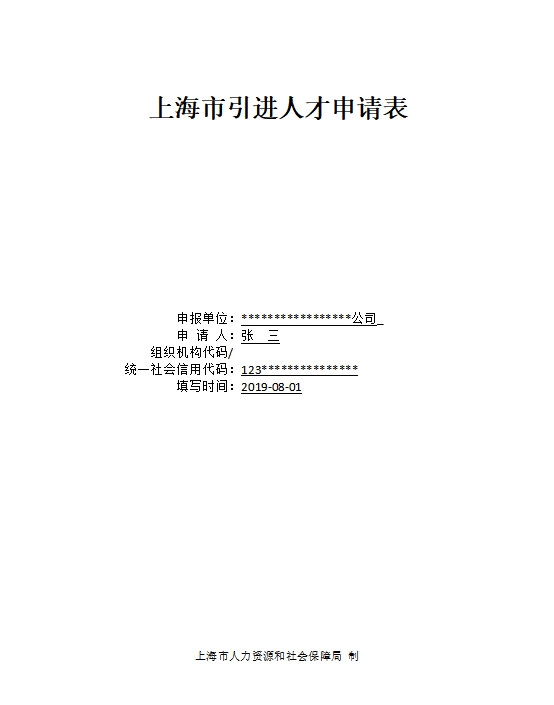 (一)《上海市引进人才申办本市常住户口申请表》;