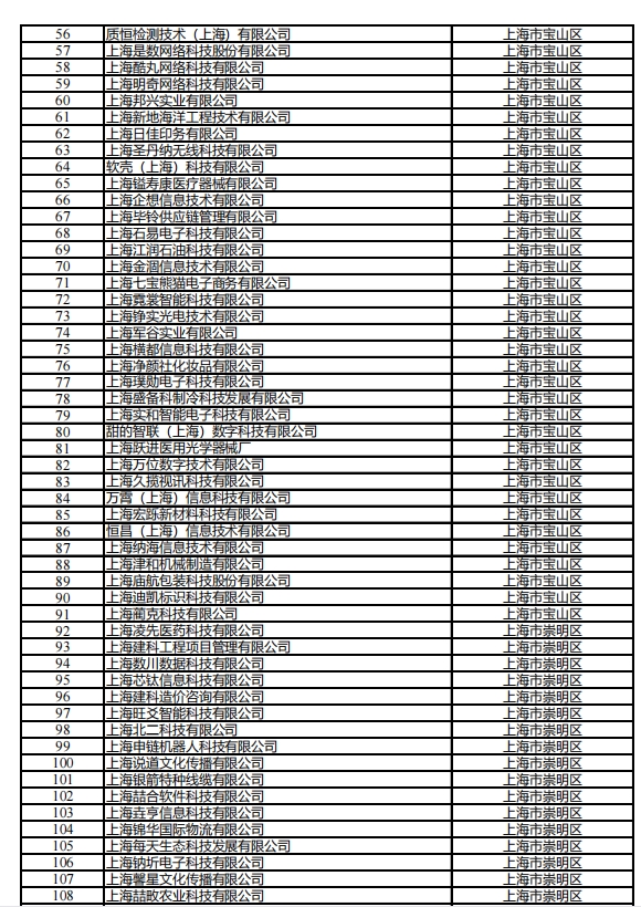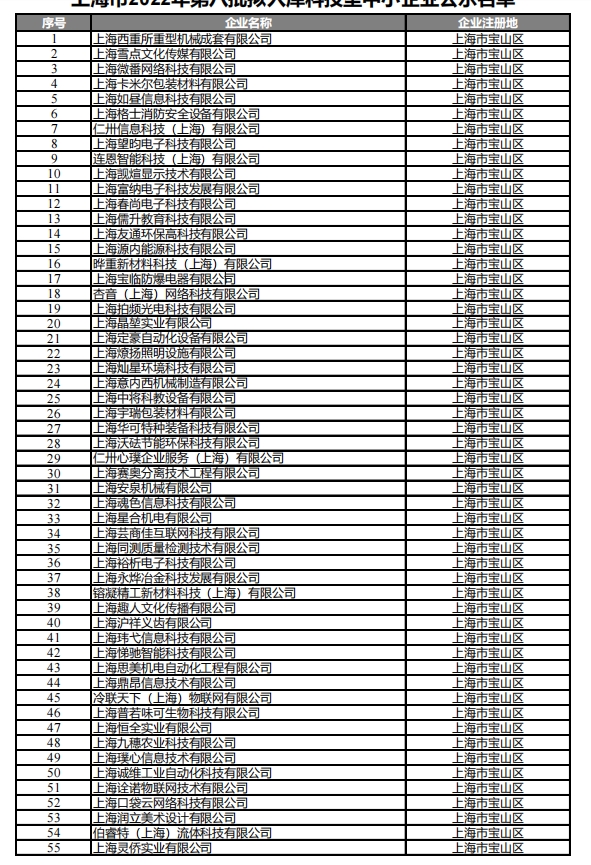 上海科创企业完整名单可在上海市科学技术委员会官网http://stcsm.sh.gov.cn/查询