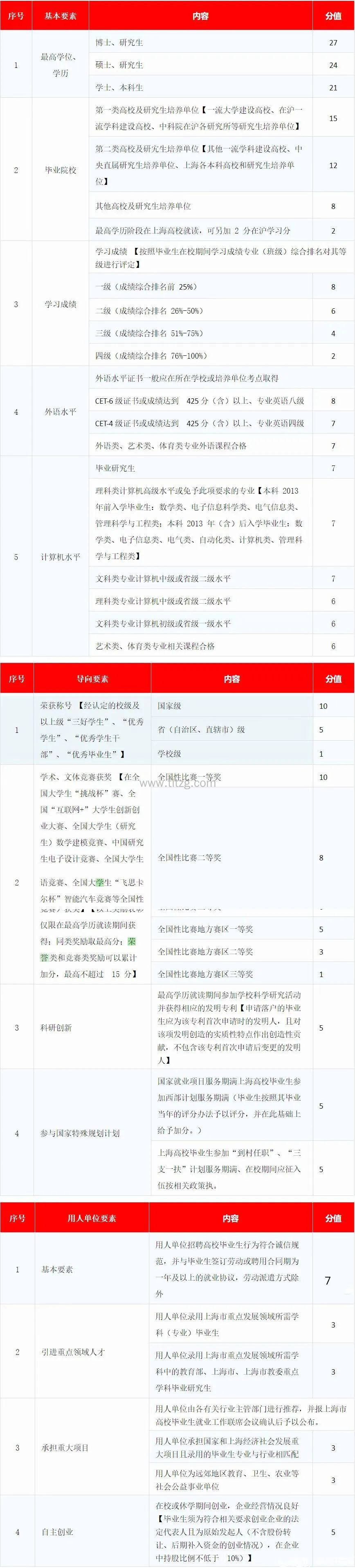 1、学位24+学校15+成绩(25%-50%)6+外语(cet6)8+计算机7+单位满分(包括毕业专业为最高分专业和就业单位为最高分单位)11+2(最高学历在沪)=73分>72分(毕业可落户)