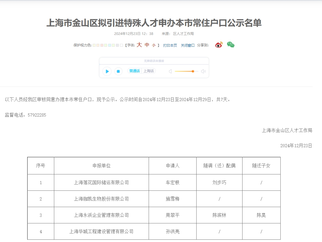 在全球化背景下,上海作为中国经济的领头羊,一直致力于吸引和培养各类优秀人才,以推动城市的经济社会发展。2025年,上海市在特殊人才引进落户政策上进行了全面优化,旨在吸引更多具有专业技能和创新能力的顶尖人才。12月23日金山区刚刚公布一批特殊人才引进名单,据此,老师为大家整理了2025年上海特殊人才引进落户的条件,详细介绍人才引进落户的最全攻略,并结合实际案例为大家提供借鉴和参考。