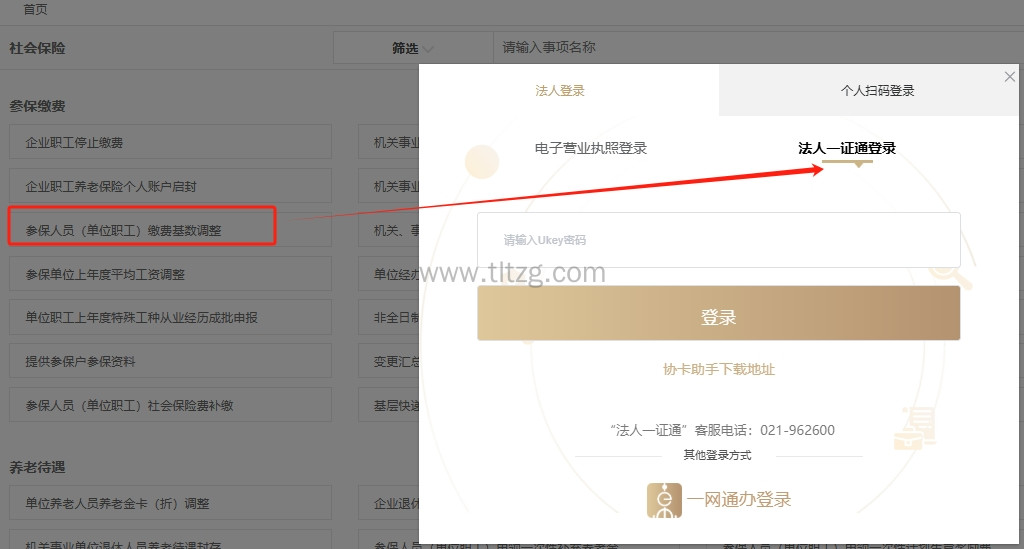 - 步骤二:插入“单位法人一证通”Ukey,并输入密码进行登录。