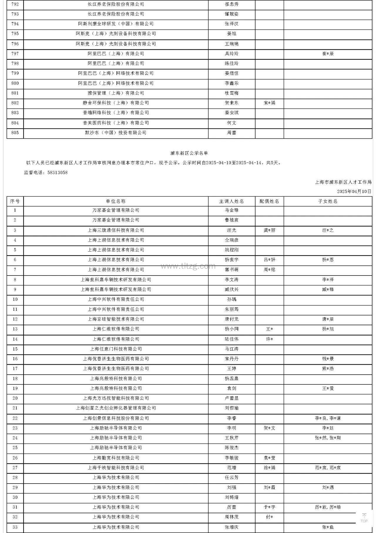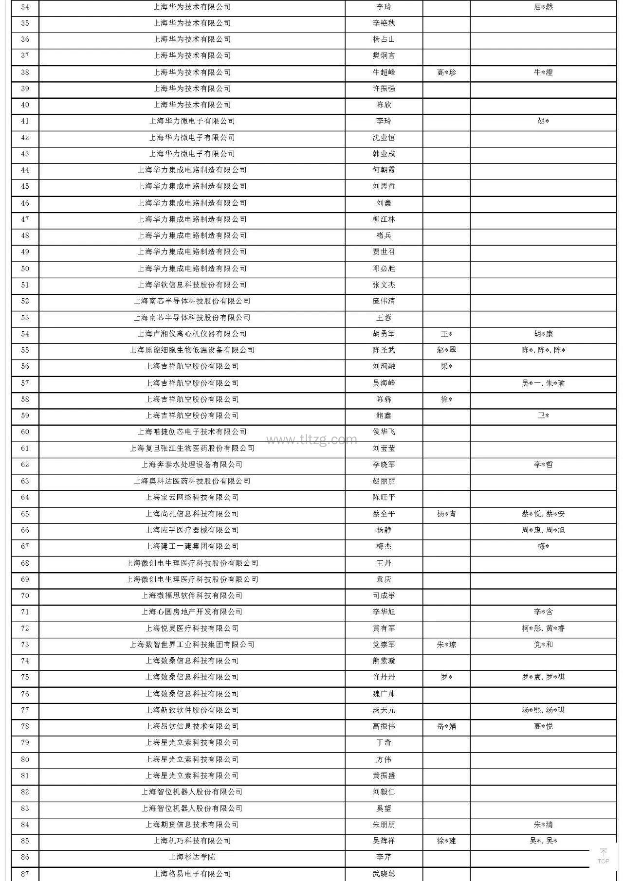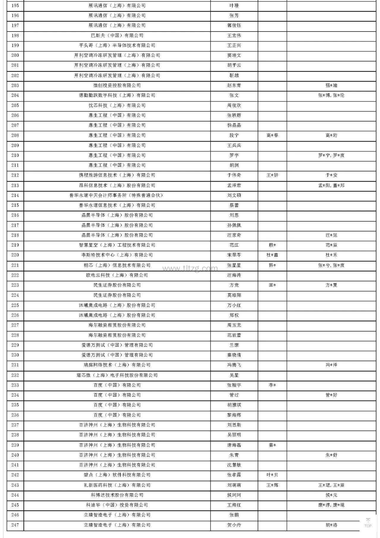 人才引进落户上海公示完整名单