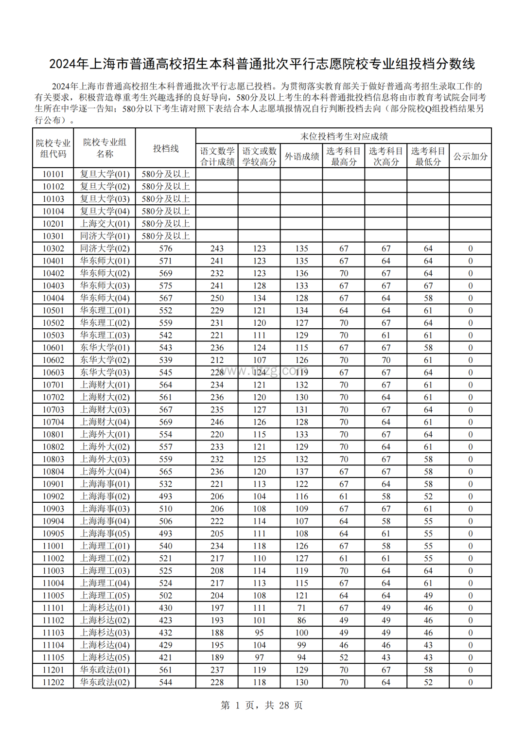2024年上海高考本科批次录取控制分数线为403分,特殊类型招生控制线503分。