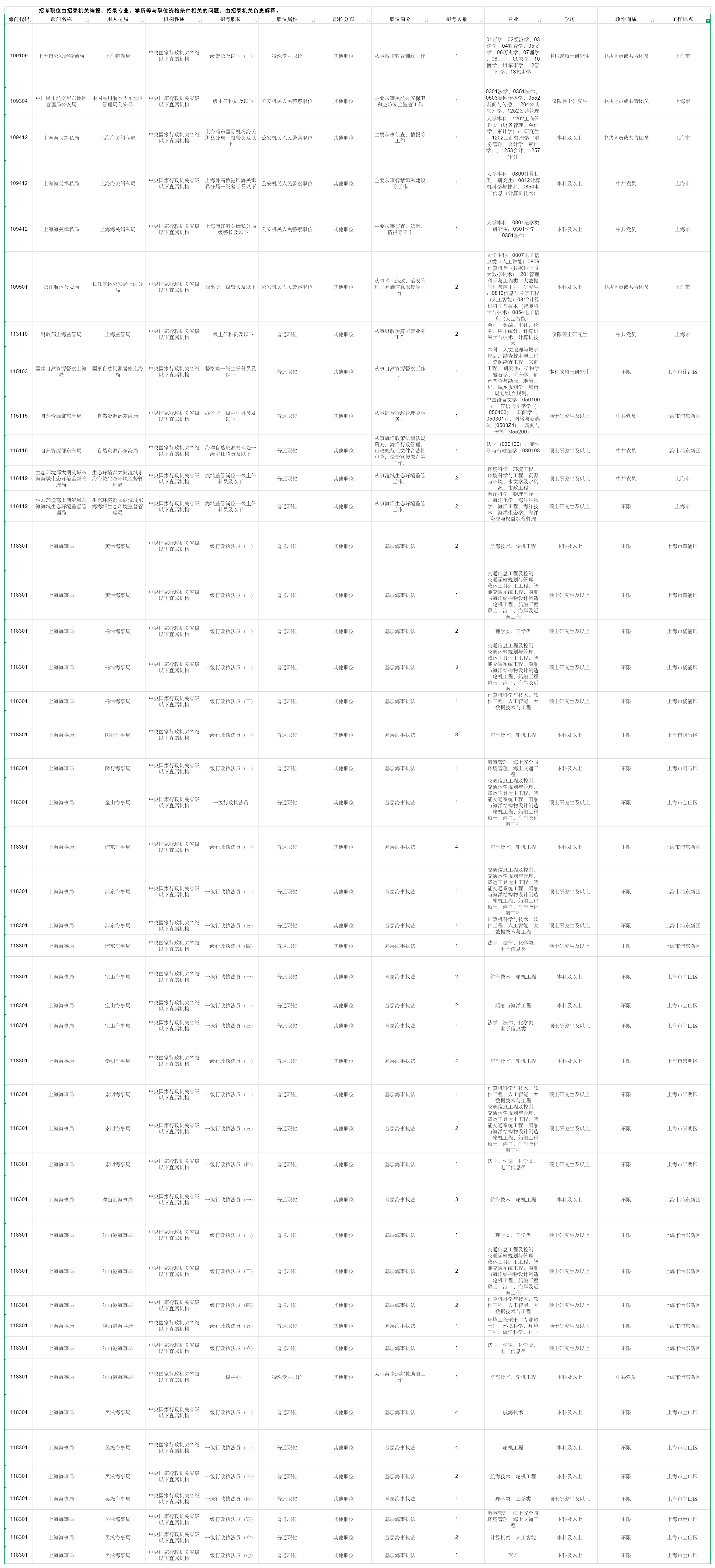 三、2026上海国考职位表:上海国考岗位表