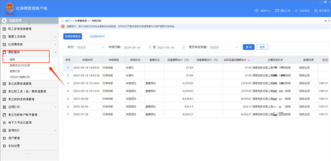 补缴的操作和正常申报缴费一样,税务系统会自动采集到社保推送的数据