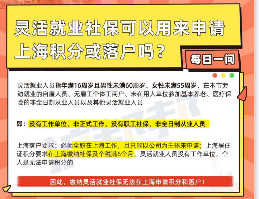 灵活就业社保可以用来申请上海积分或落户吗? ”