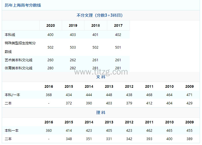 2021年上海高考成绩查询时间:历年上海高考分数线