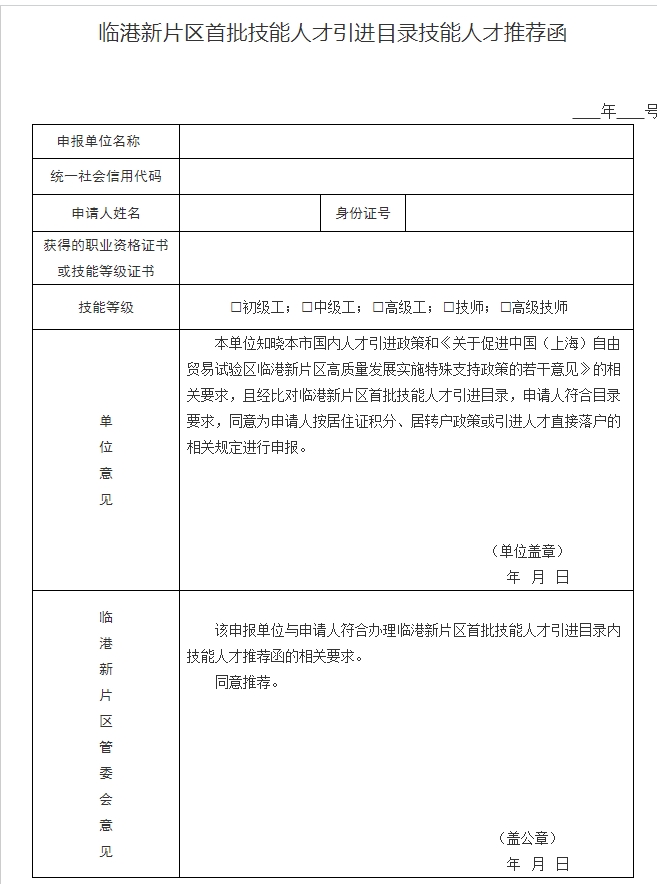(一)自贸区临港新片区持有《上海市居住证》人员申办 本市常住户口推荐函;