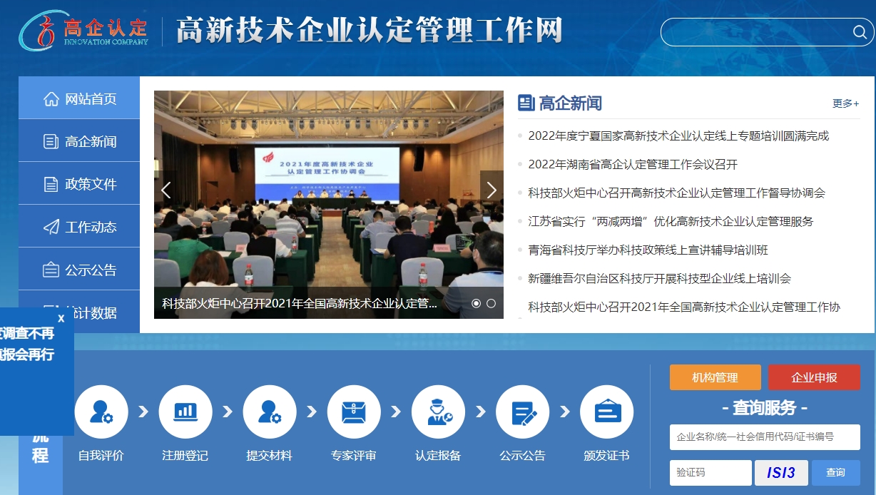 第三步:输入要查询的企业名称/统一社会信用代码/证书编号后,输入验证码,点击查询。如该企业为高新技术企业,则会出现下图: