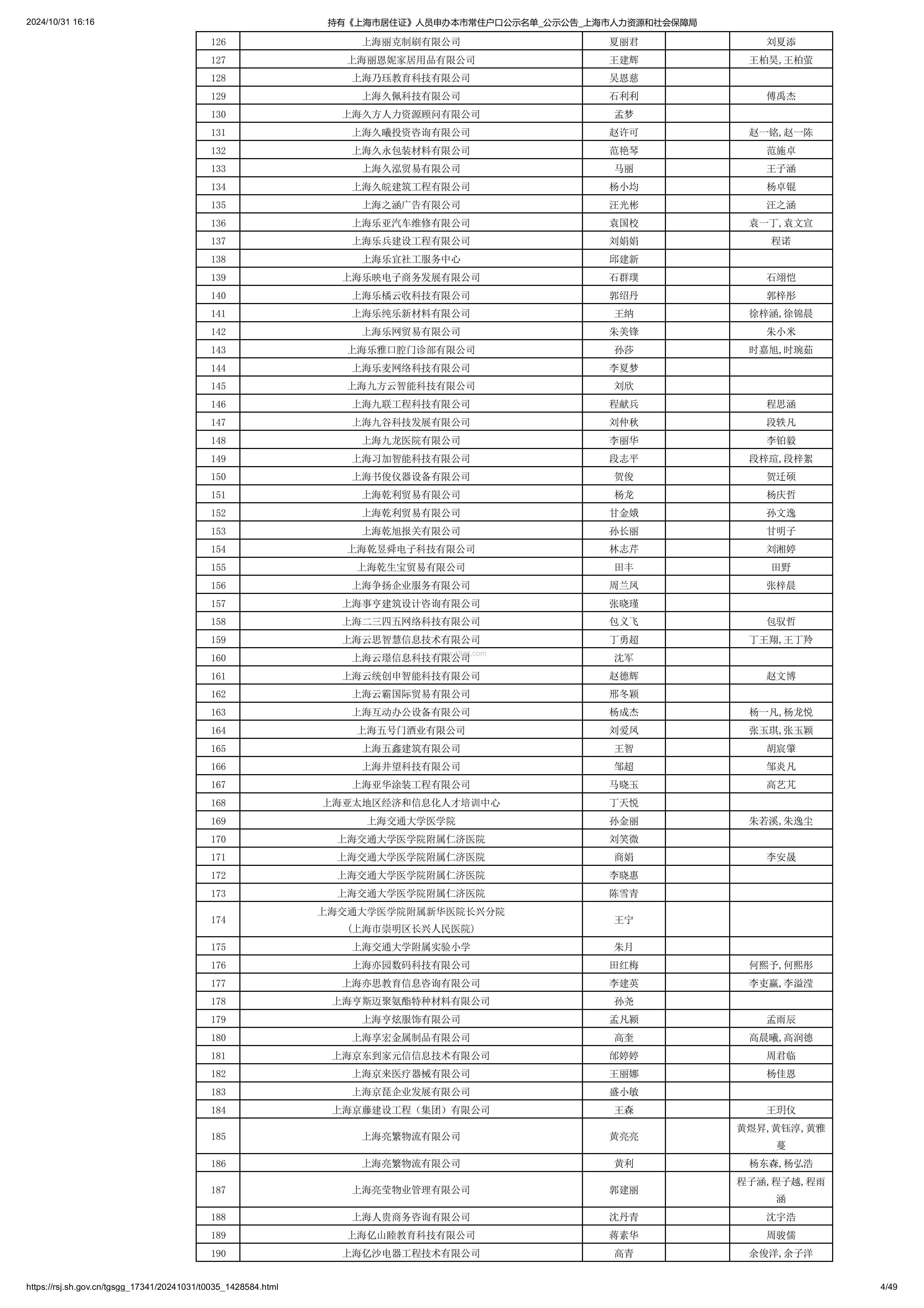此次名单较多,本文只展示部分,完整名单可查看持有《上海市居住证》人员申办本市常住户口公示名单