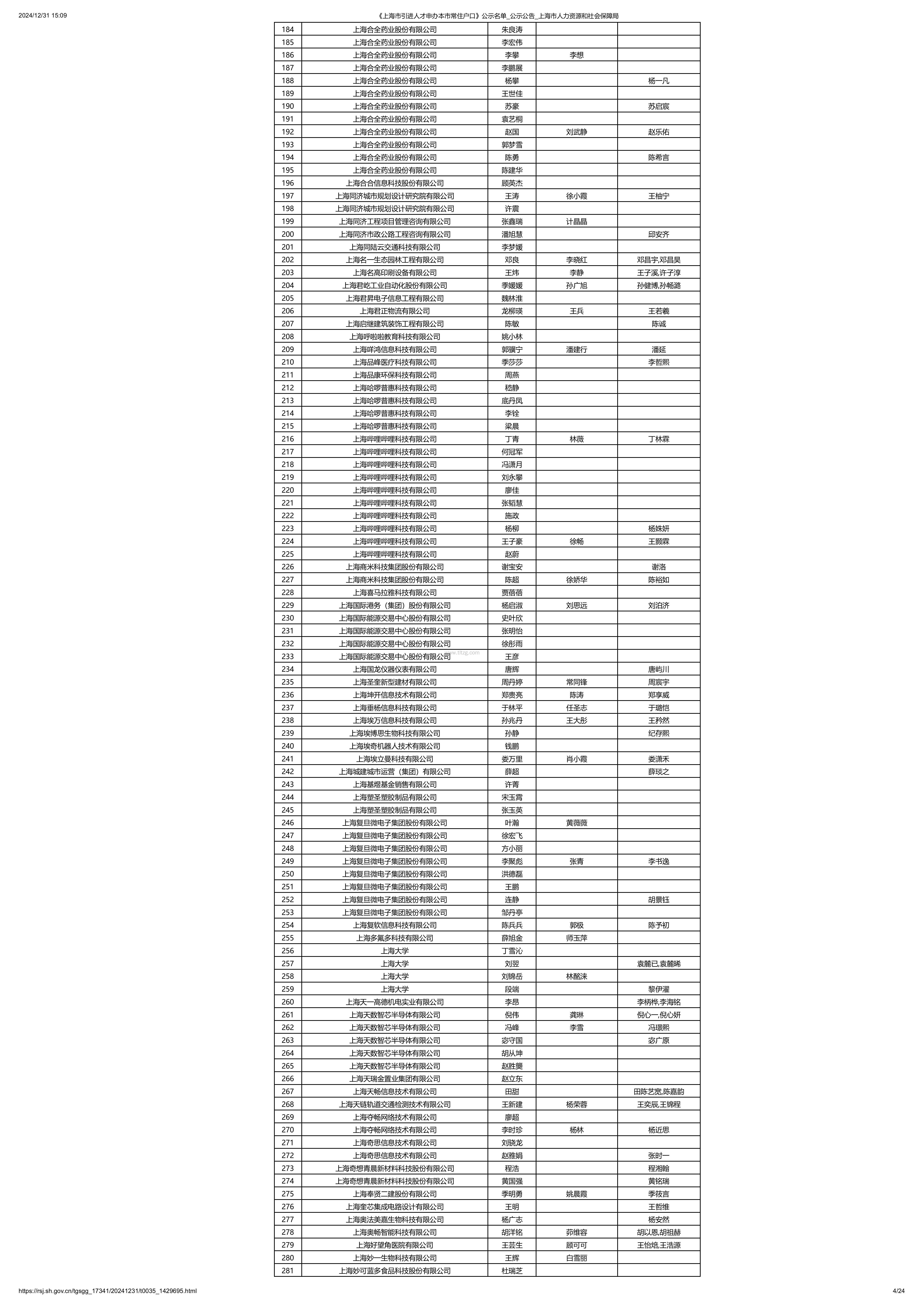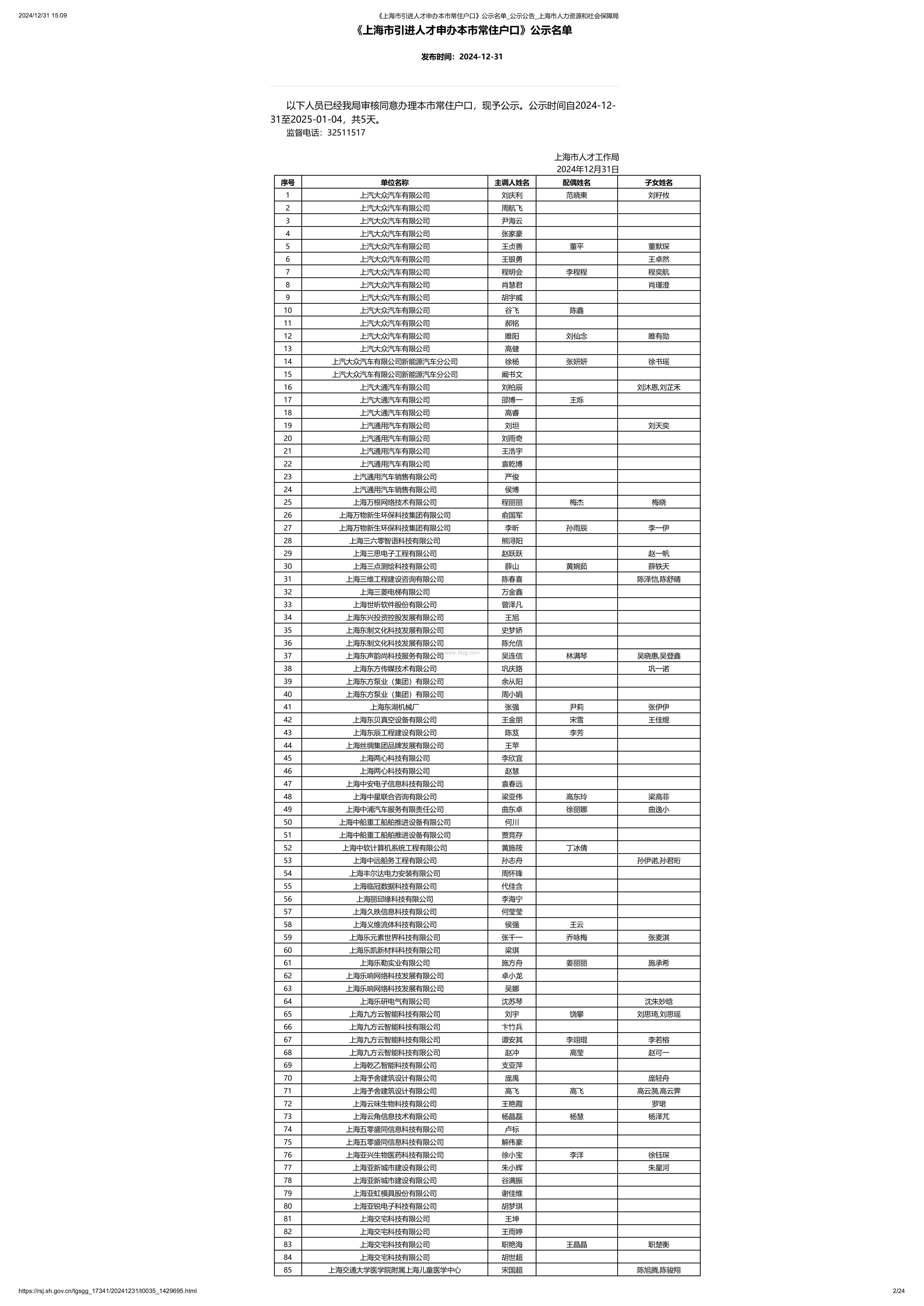 12月31日,上海市人社局发布了2024年12月第2批上海人才引进落户公示名单,共有2210位朋友进入公示,快来看看这一批名单里面有你的名字嘛!此次落户上海名单公示时间自2024-12-31至2025-01-04,共5天。