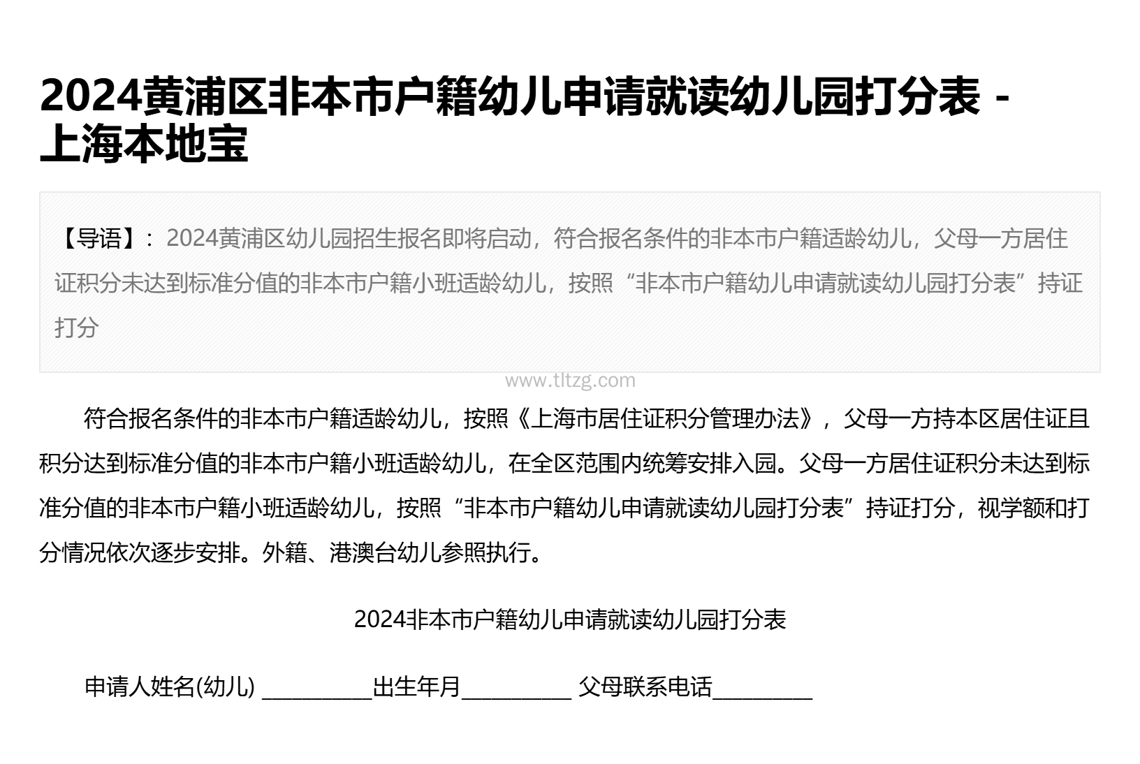 例如,在黄浦区,非本市户籍幼儿报名公办园时,如果父母一方居住证积分未达到标准分值,将按照“黄浦区非沪籍人士子女申请就读幼儿园打分表”持证打分,视学额和打分情况依次逐步安排。
